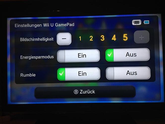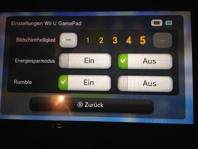 Normalerweise ist die Helligkeitsstufe auf 4 statt 5 eingestellt, also könntest du das schon mal hochstellen. Das GamePad kann auch nur 480p darstellen im Gegensatz zum HD-Fernseher mit 720p oder 1080p. Merkt man teilweise auch bei Texten oder bestimmten Farben, z.B. rot, dass diese einfach nicht so scharf dargestellt sind.