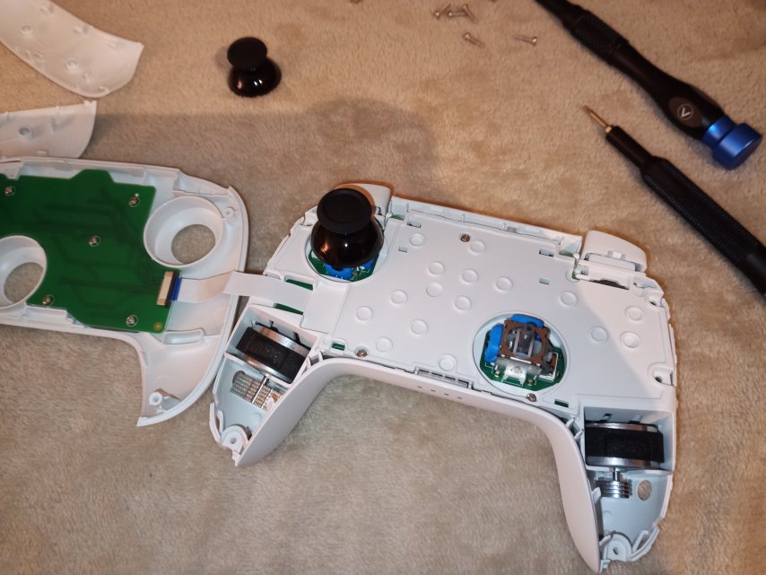 Ich hab mir nochmal den Spaß gemacht und in einen rein gesehen die Demontage ist etwas schwerer als beim Pro Controller aber mit dem I fix it Pro Tech Toolkit immer noch ziemlich leicht.