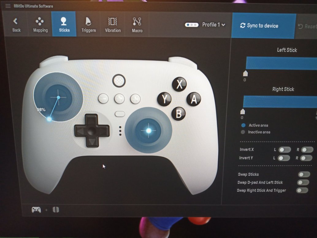 Zu den 98% ,die Switch zeigt in ihrem Menü trotzdem 100% an da sieht man mal wie fein man das bei 8 bitdo einstellen kann .