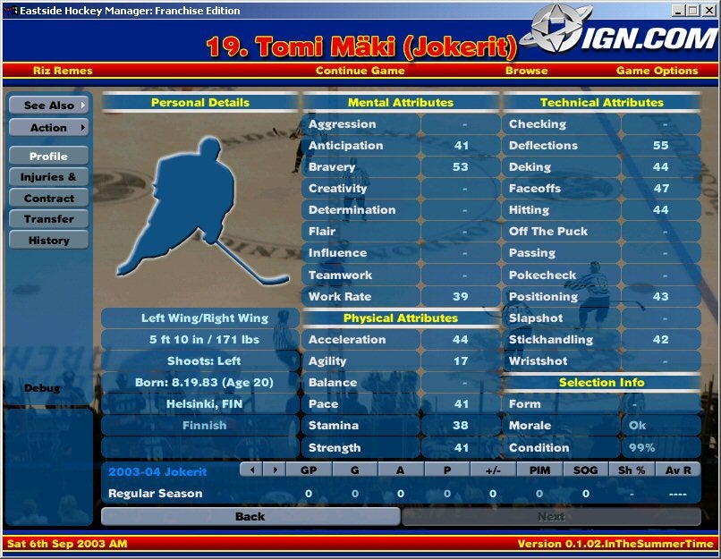 man wählt wie in einer Season ein Team. Man spielt dann eben den manager. Als erstes fällt auf , das alle Spieler schlechter sind als sonst, z.B. ist ein Mats Sundin kein Weltklasse Mann mehr, sondern „nur“ ein guter Spieler. Nach gewonnenen Spielen, gelungene Transfers etc. kriegt man sogenannte „Managerpunkte“ (ähnlich wie Erfahrungspuntke in RPG´s ) Diese Punkte kann man z.B. in eine bessereTrainingshalle oder gar besseren Spielerbeobachter investieren.