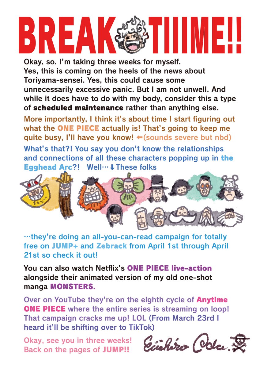 Ich bin immer noch gespannt ob sie es in meiner Lebenszeit bei diesem Tempo noch schaffen die Story abzuschließen, wird aber schwierig wenn Alabasta erst Ende 2025 kommen soll , da ist es bis Wano immer noch ein weiter weg .., ich bin aber mal gespannt wie spätere Bosse aussehen werden ^^