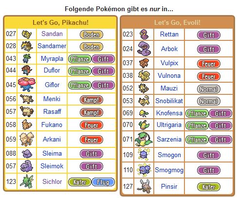 Folgende Pokémon gibt es nur in einer der jeweiligen Editionen: